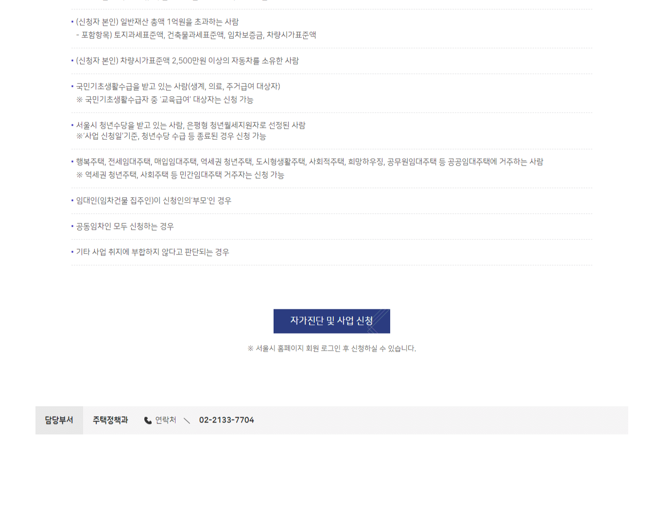 - 기준중위소득 150% 이하 청년 1인가구만 신청이 가능합니다