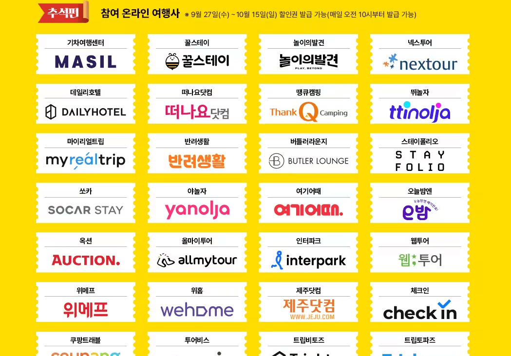 이번 행사에는 야놀자, 여기 어때, 꿀스테이, 넥스 투어 등 총 44개의 온라인여행사(OTA)와 국내 등록된 약 3만 개의 숙박시설이 참여하며, 중소여행사를 위한 별도의 중소전문관도 운영될 예정입니다.